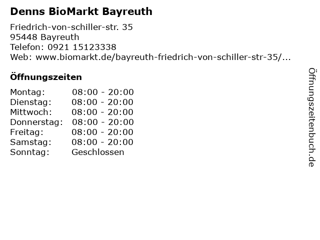 | Öffnungszeiten Denns BioMarkt Bayreuth in Bayreuth anzeigen | |