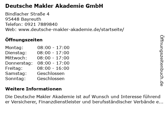 Branchen & Suchbegriffe zu Deutsche Makler Akademie GmbH:akademie, ausbildungszentrum, deutsche, makler |