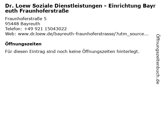 | Dr. Loew Soziale Dienstleistungen - Einrichtung Bayreuth Fraunhoferstraße anrufen | |
