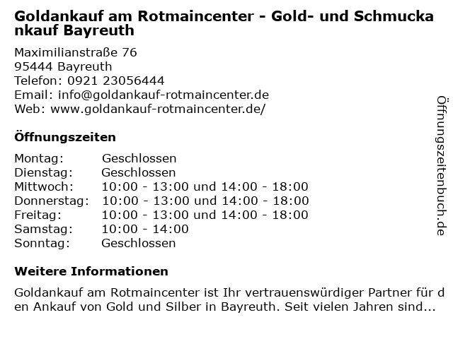 Branchen & Suchbegriffe zu Goldankauf am Rotmaincenter - Gold- und Schmuckankauf Bayreuth:gold, goldankauf, rotmaincenter, schmuckankauf |