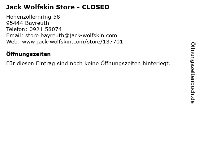 | Öffnungszeiten Jack Wolfskin Store - CLOSED in Bayreuth anzeigen | |