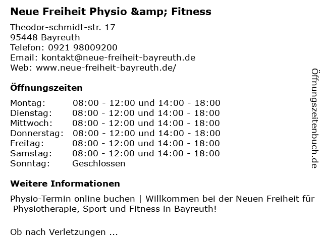 Branchen & Suchbegriffe zu Neue Freiheit Physio & Fitness:fitness, freiheit, neue, physio |