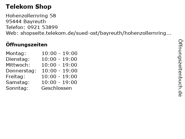 | Öffnungszeiten Telekom Shop in Bayreuth anzeigen | |