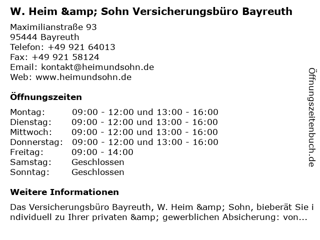 Branchen & Suchbegriffe zu W. Heim & Sohn Versicherungsbüro Bayreuth:beratung, heim, sohn, versicherung, versicherungsbüro, w. |