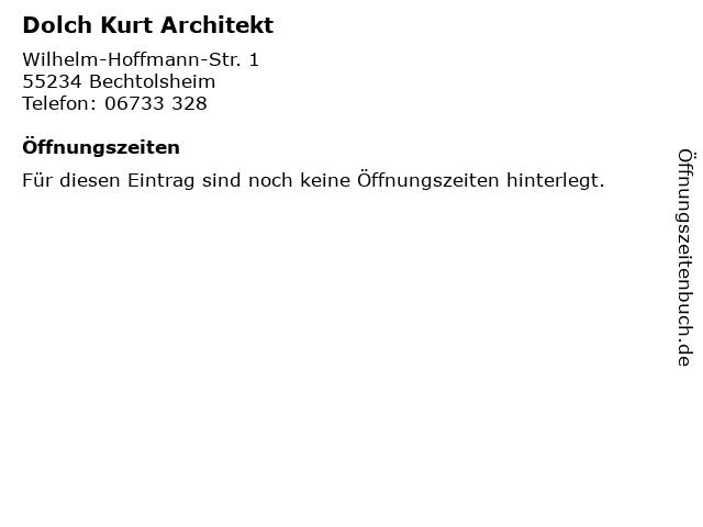| Öffnungszeiten Dolch Kurt Architekt in Bechtolsheim anzeigen | |