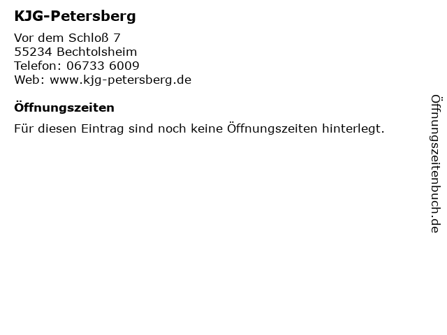 | Öffnungszeiten KJG-Petersberg in Bechtolsheim anzeigen | |