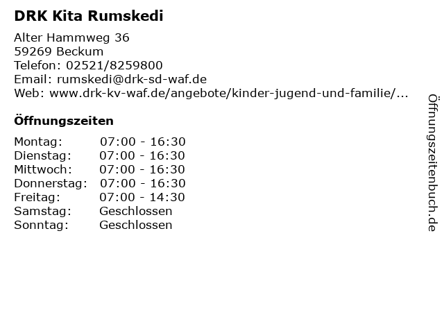 | Öffnungszeiten DRK Kita Rumskedi in Beckum anzeigen | |