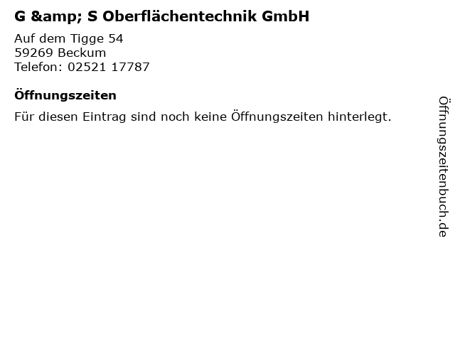 | Öffnungszeiten G & S Oberflächentechnik GmbH in Beckum anzeigen | |