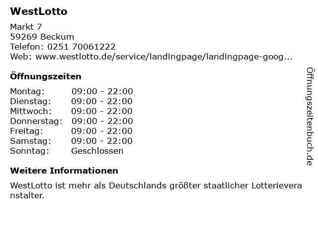 Öffnungszeiten WestLotto in Beckum anzeigen
