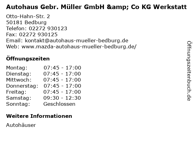 Öffnungszeiten Autohaus Gebr. Müller GmbH & Co KG Werkstatt in Bedburg anzeigen
