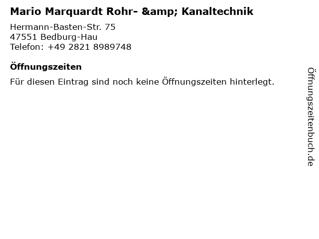 | Mario Marquardt Rohr- & Kanaltechnik anrufen | |