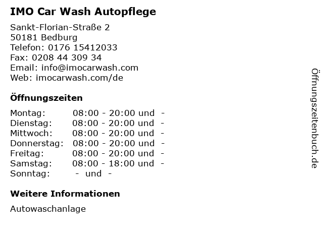 | Öffnungszeiten IMO Car Wash Autopflege in Bedburg anzeigen | |