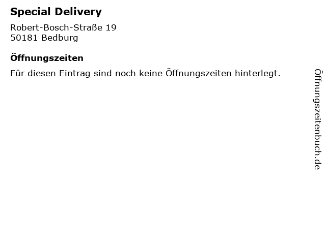 Öffnungszeiten Special Delivery in Bedburg anzeigen