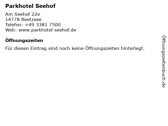 | Öffnungszeiten Parkhotel Seehof in Beetzsee anzeigen | |