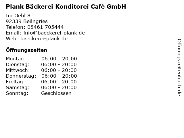 1 Plank Bäckerei Konditorei Café GmbH (Entfernung: 8,55 km) Hauptstraße 76, 92345 Dietfurt an der Altmühl 6 |