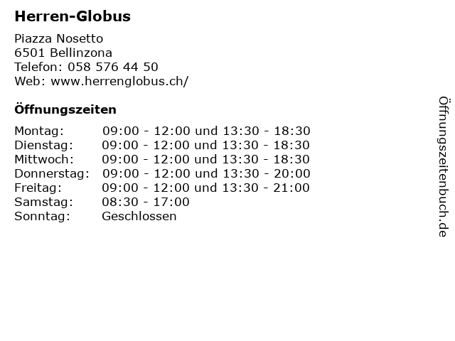 | Öffnungszeiten Herren-Globus in Bellinzona anzeigen | |