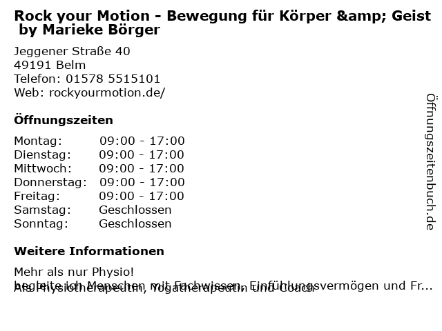 Branchen & Suchbegriffe zu Rock your Motion - Bewegung für Körper & Geist by Marieke Börger:bewegung, by, börger, geist, körper, marieke, motion, rock, yoga-studios, your |