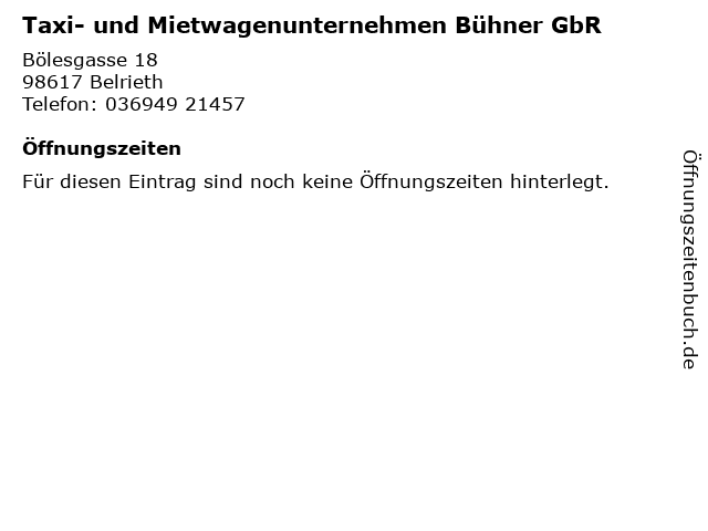 | Taxi- und Mietwagenunternehmen Bühner GbR anrufen | |