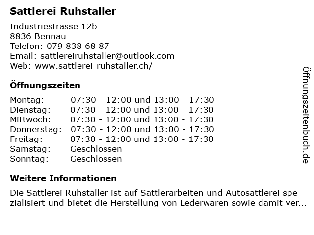 | Öffnungszeiten Sattlerei Ruhstaller in Bennau anzeigen | |