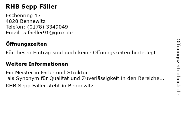 | Öffnungszeiten RHB Sepp Fäller in Bennewitz anzeigen | |
