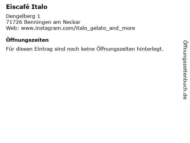 | Öffnungszeiten Eiscafé Italo in Benningen am Neckar anzeigen | |