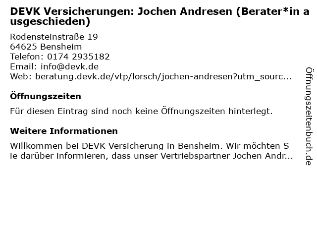 | DEVK Versicherungen: Jochen Andresen (Berater*in ausgeschieden) anrufen | |