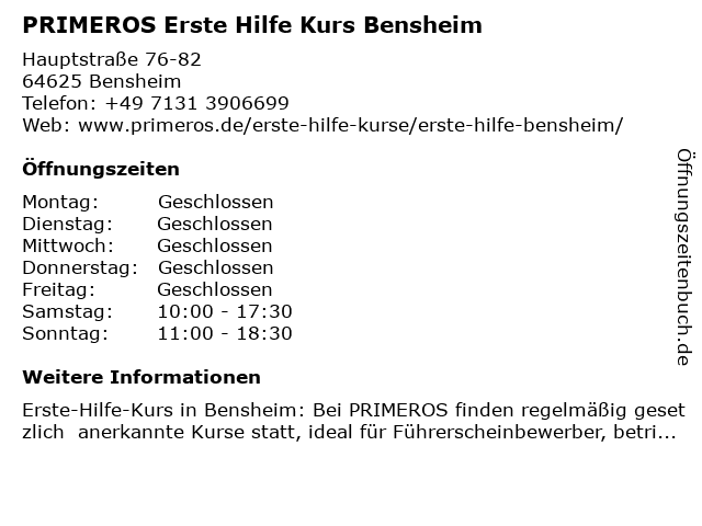 Branchen & Suchbegriffe zu PRIMEROS Erste Hilfe Kurs Bensheim:erste, erste hilfe am unfallort, erste hilfe kurs, führerschein sehtest, herz-lungen-wiederbelebung, herzinfarkt, hilfe, kurs, primeros, schlaganfall, stabile seitenlage, verbandmaterial |