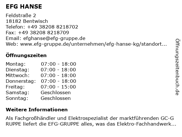 | Adresse EFG HANSE in Bentwisch anzeigen |