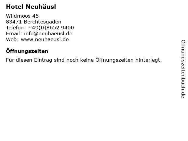 | Öffnungszeiten Hotel Neuhäusl in Berchtesgaden anzeigen | |