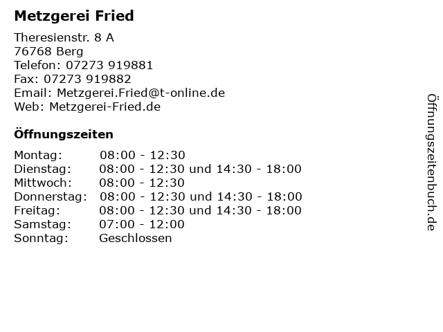 | Öffnungszeiten Metzgerei Fried in Berg anzeigen | |