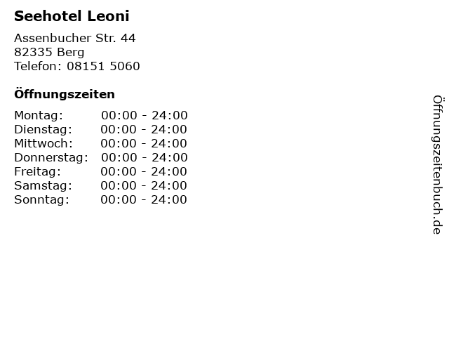 | Öffnungszeiten Seehotel Leoni in Berg anzeigen | |
