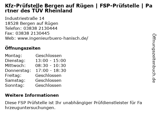 Branchen & Suchbegriffe zu Kfz-Prüfstelle Bergen auf Rügen | FSP-Prüfstelle | Partner des TÜV Rheinland:auf, des, fsp, kfz, partner, prüfstelle, rheinland, rügen, tüv |