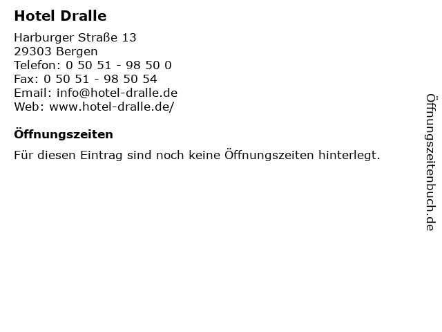 | Öffnungszeiten Hotel Dralle in Bergen anzeigen | |