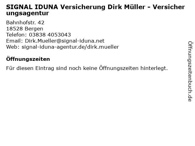 1 SIGNAL IDUNA Versicherung Mario Fritzsche - Versicherungsagentur (Entfernung: 0,01 km) Bahnhofstr. 42, 18528 Bergen Auf Rügen 6 |