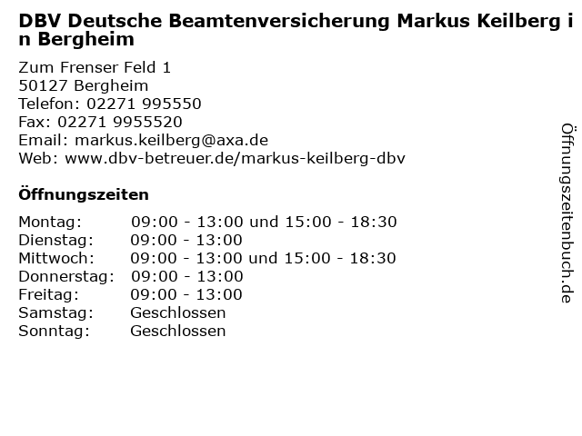Branchen & Suchbegriffe zu DBV Deutsche Beamtenversicherung Markus Keilberg in Bergheim:altersvorsorge, beamtenversicherung, berufshaftpflichtversicherung, berufsunfähigkeitsversicherung, dbv, deutsche, gebäude- und hausratsversicherung, keilberg, lebensversicherung, markus, unternehmen für versicherungsfachfragen, zahnmedizinische versicherung |