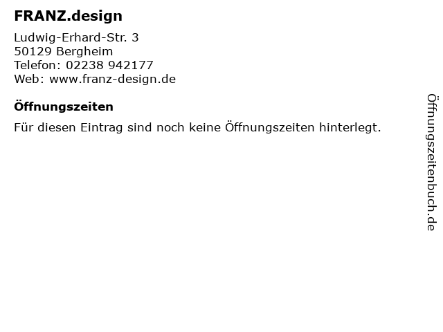 | Öffnungszeiten FRANZ.design in Bergheim anzeigen | |