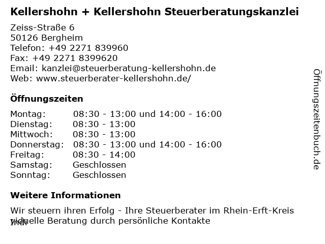 5 Kellershohn GmbH & Co. KG / plettac-assco Lager Rheinland (Entfernung: 13,91 km) Hermann-Seger-Strasse 22, 50226 Frechen 6 Steuerberatungskanzlei Hellmut Schneider Steuerberatungskanzlei (Entfernung: 18,24 km) St.-Bernhard-Str. 63, 41516 Grevenbroich |
