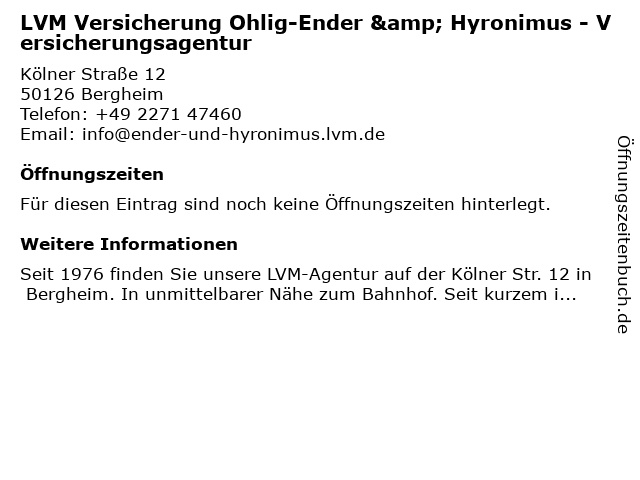 | LVM Versicherung Ohlig-Ender & Hyronimus - Versicherungsagentur anrufen | |