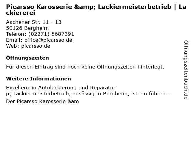 | Picarsso Karosserie & Lackiermeisterbetrieb | Lackiererei anrufen | |