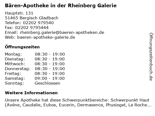Branchen & Suchbegriffe zu Bären-Apotheke in der Rheinberg Galerie:apotheke, bären, galerie |