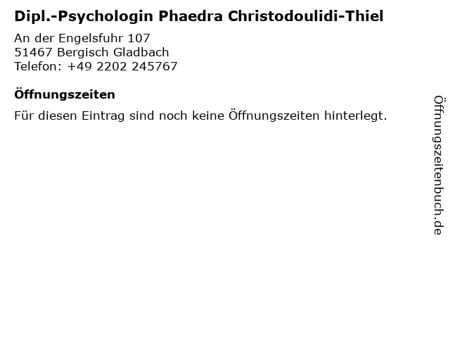 | Dipl.-Psychologin Phaedra Christodoulidi-Thiel anrufen | |
