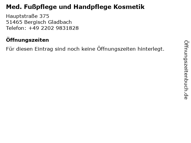 | Med. Fußpflege und Handpflege Kosmetik anrufen | |