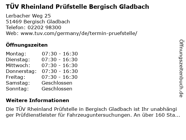 Branchen & Suchbegriffe zu TÜV Rheinland Prüfstelle Bergisch Gladbach:gladbach, prüfstelle, rheinland, tüv |