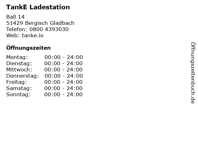 Öffnungszeiten TankE Ladestation in Bergisch Gladbach anzeigen