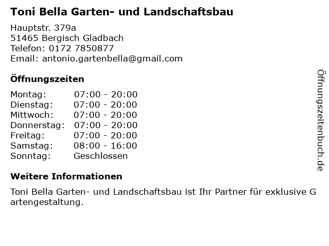 Branchen & Suchbegriffe zu Toni Bella Garten- und Landschaftsbau:bella, garten, landschaftsbau, landschaftsgestalter, pflasterungsarbeiten, toni |