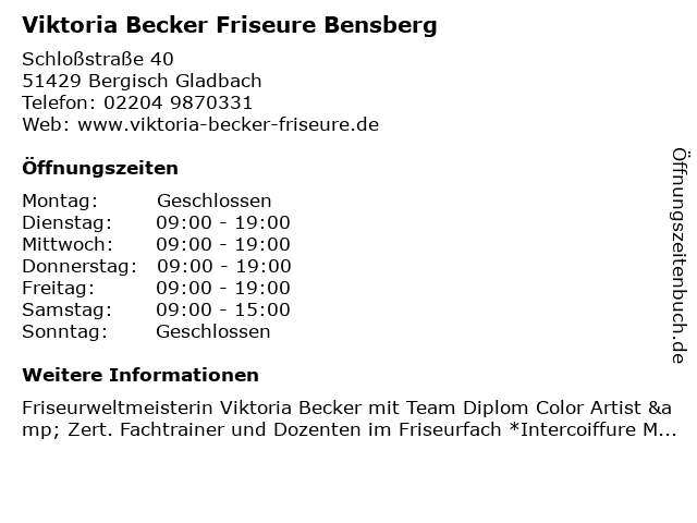 Branchen & Suchbegriffe zu Viktoria Becker Friseure Bensberg:becker, bensberg, friseure, viktoria |