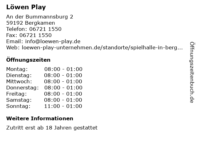 | Adresse Löwen Play in Bergkamen anzeigen |