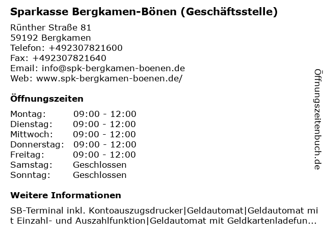 | Sparkasse Bergkamen-Bönen (Beratungs-Center) anrufen | |