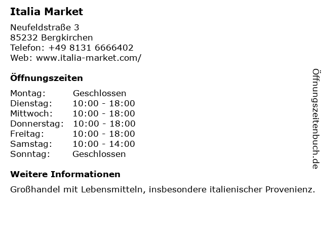 | Adresse Italia Market in Bergkirchen anzeigen |