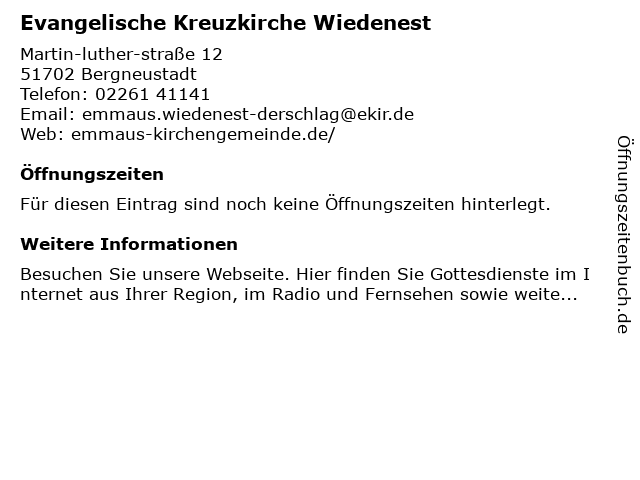 | Evangelische Kreuzkirche Wiedenest anrufen | |